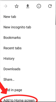 Ga met je smartphone in de browser eerst even naar onze website en druk daar rechtsboven op het icoontje: